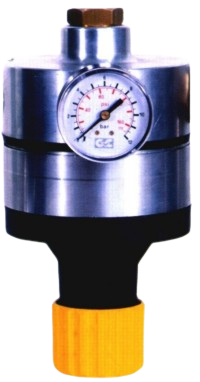The adjustment of the output pressure is easily managed thanks to a nylon knob, the pair of pressure gauges allows direct control over the adjustment. The overpressure valve ensures safe working.