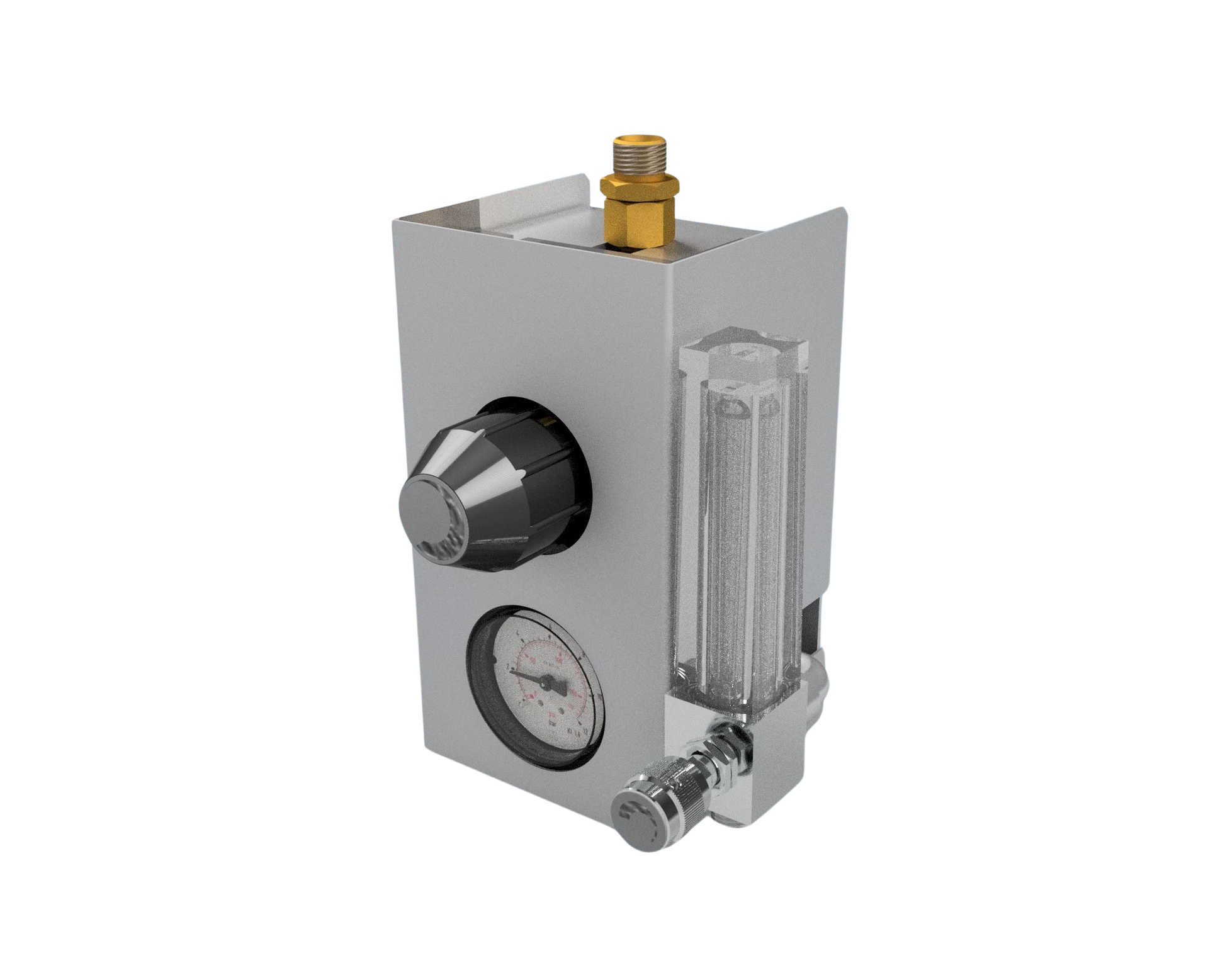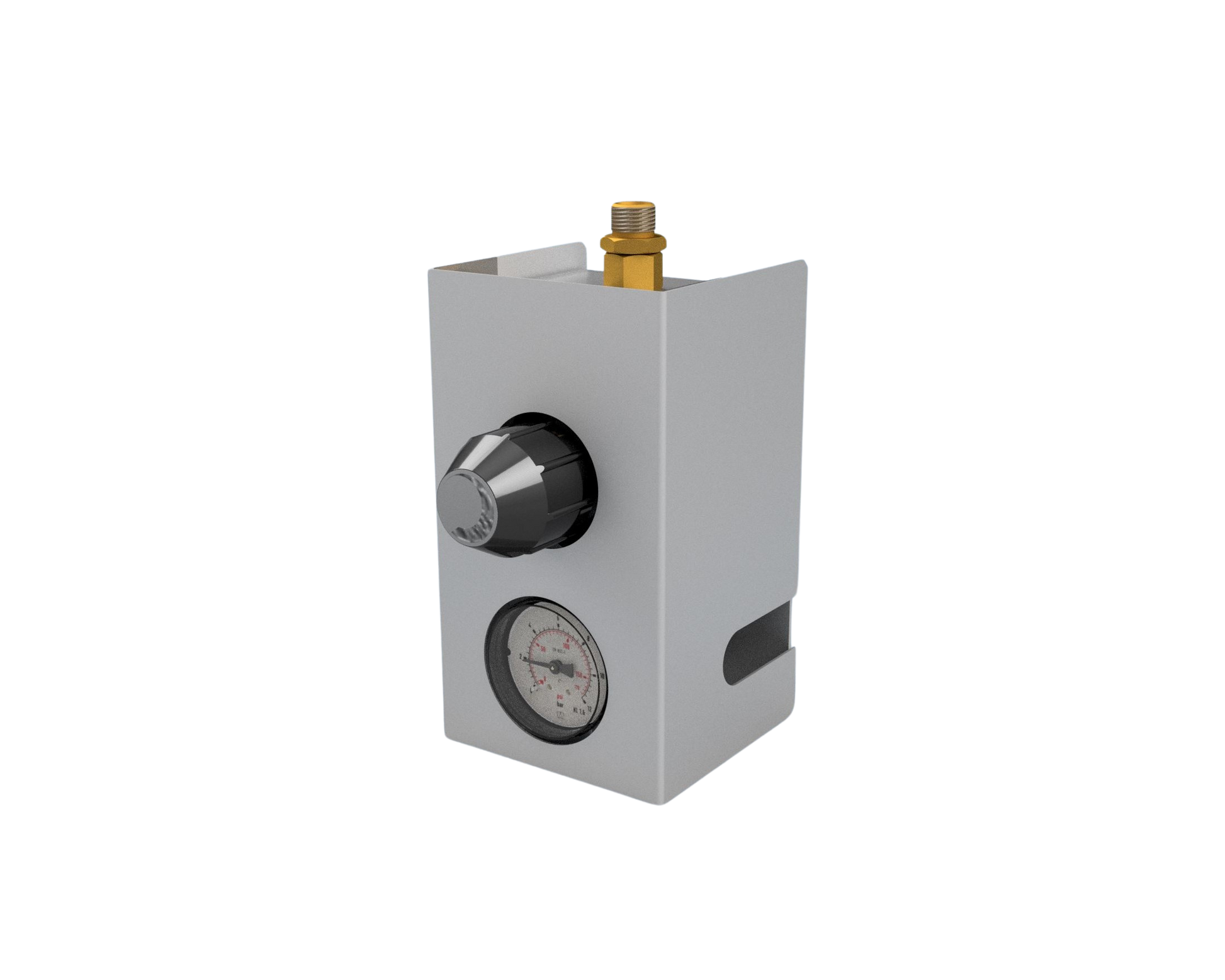 La regolazione della pressione in uscita è facilmente gestibile grazie ad una manopola in nylon, la coppia di manometri permette il controllo diretto sulla regolazione. La valvola di sovrapressione ne assicura il lavoro in sicurezza.